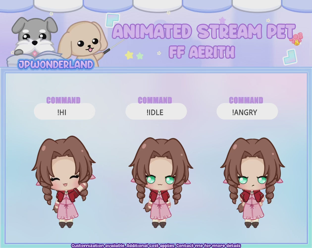 Animated Chibi Aerith Stream Pet with 12 animations, reacts to commands and alerts | Digital assets | Stream Deco | Twitch Pets animation