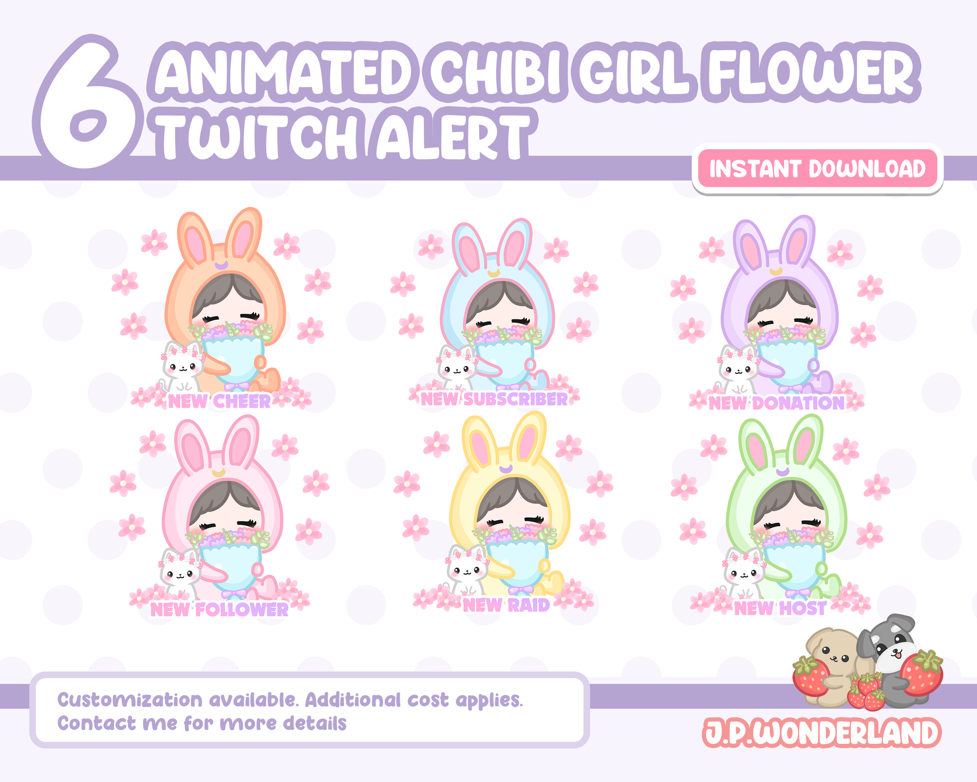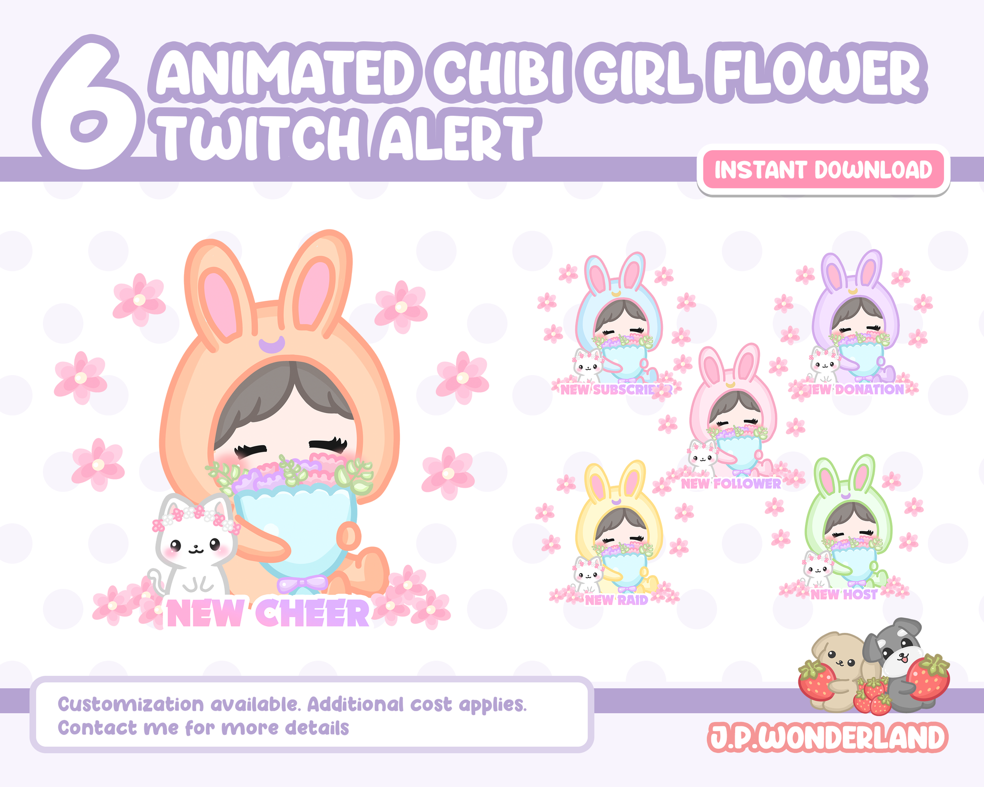 Animated Chibi Girl with Flowers Twitch Alerts / Stream Alerts