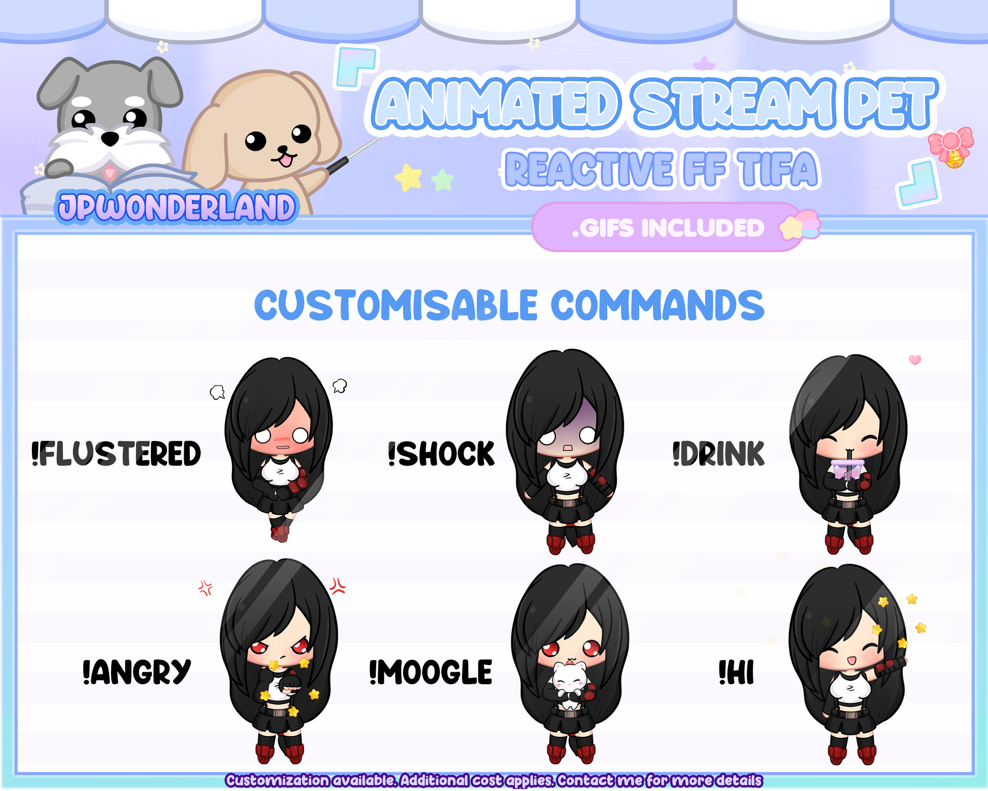 Animated Chibi Tifa Stream Pet with 12 animations, reacts to commands and alerts | Digital assets | Stream Deco | Twitch Pets animation