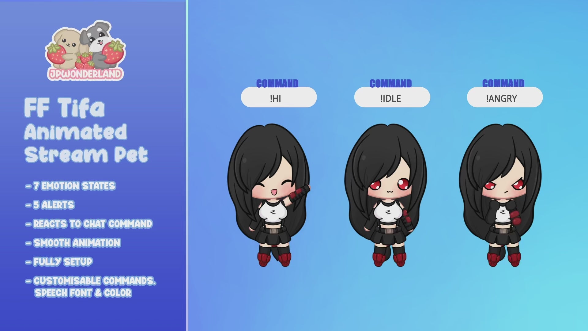 Add this cute FF Chibi Tifa to stream as a pet to interact with your audience or as a stream decoration!