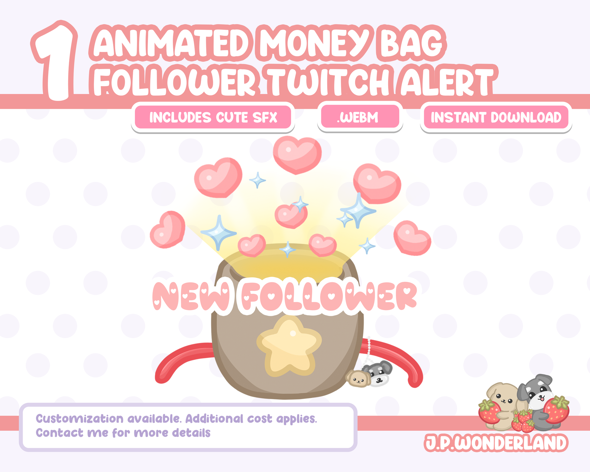 Cute animated Coin bag twitch alert for new follower and new donation!