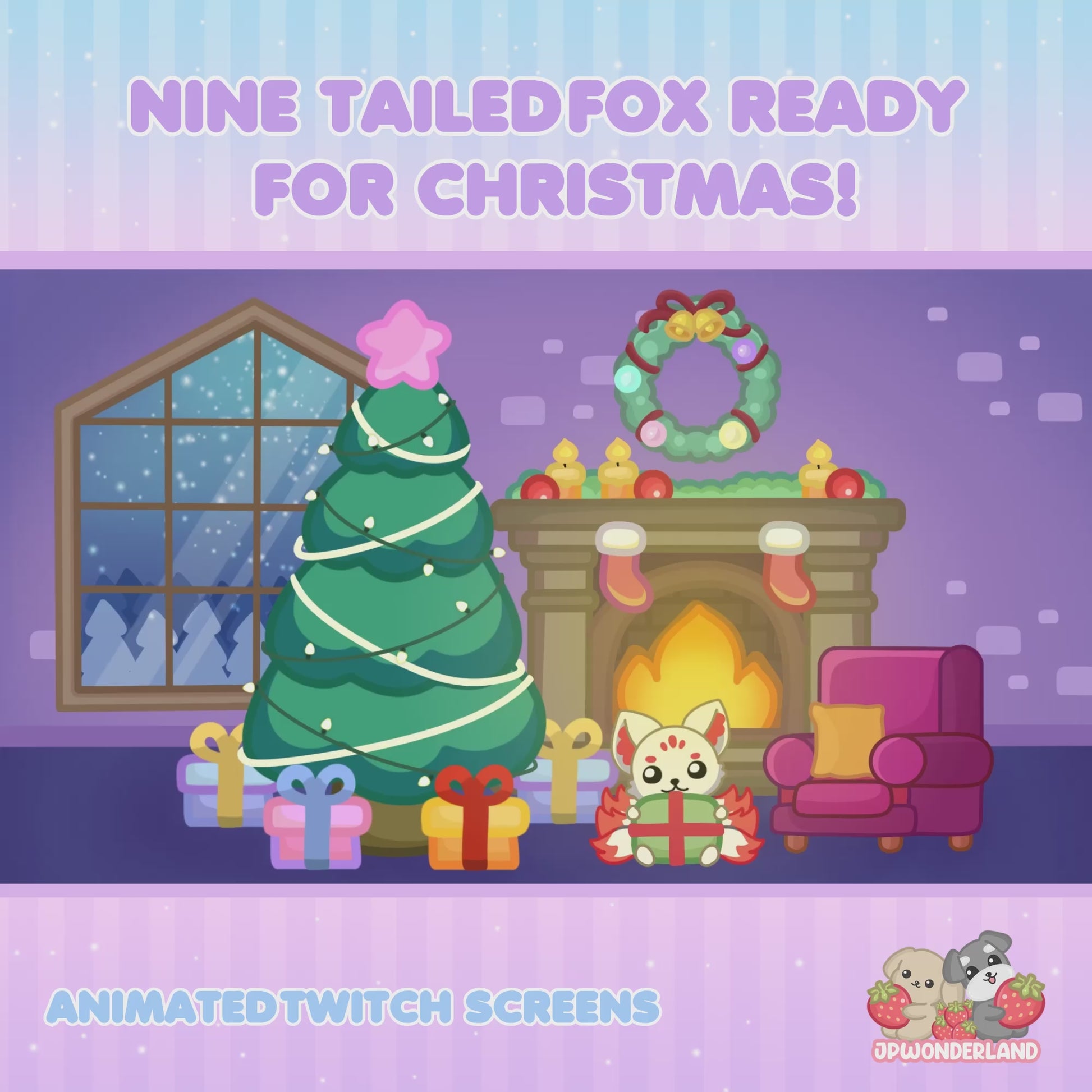 Animated Nine Tailed Fox ready for Christmas Twitch Screens - Starting Soon, Be Right Back, Ending Screens