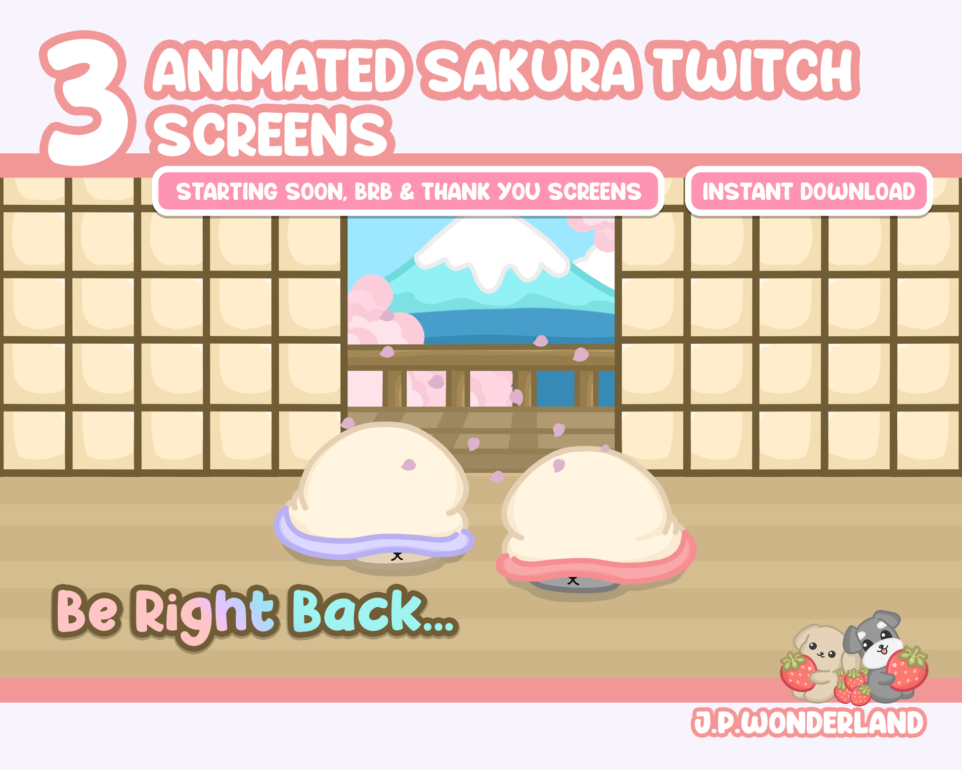 Animated Sakura Puppies Twitch Screens - Starting Soon, Be Right Back, Thanks for watching & Offline Screens