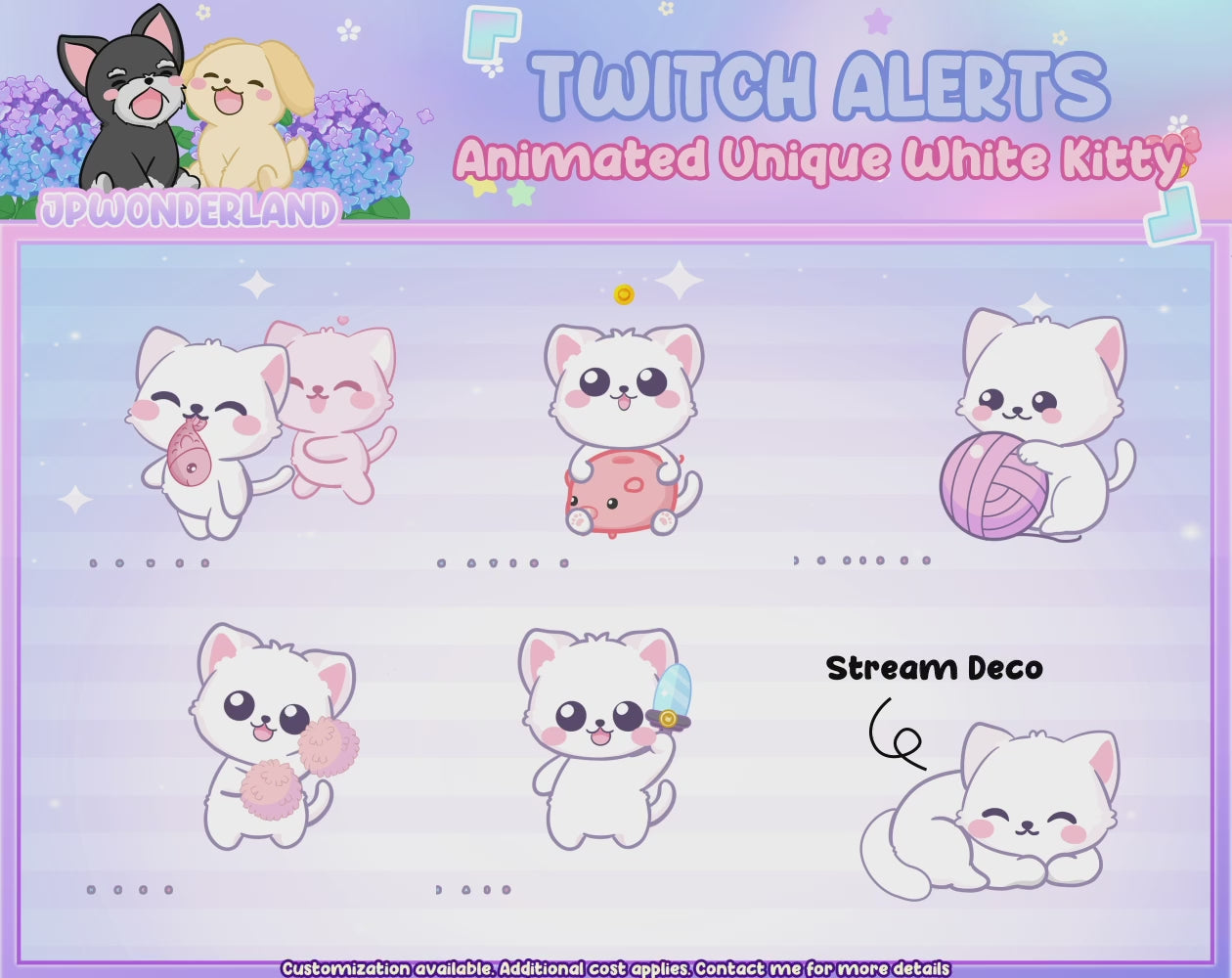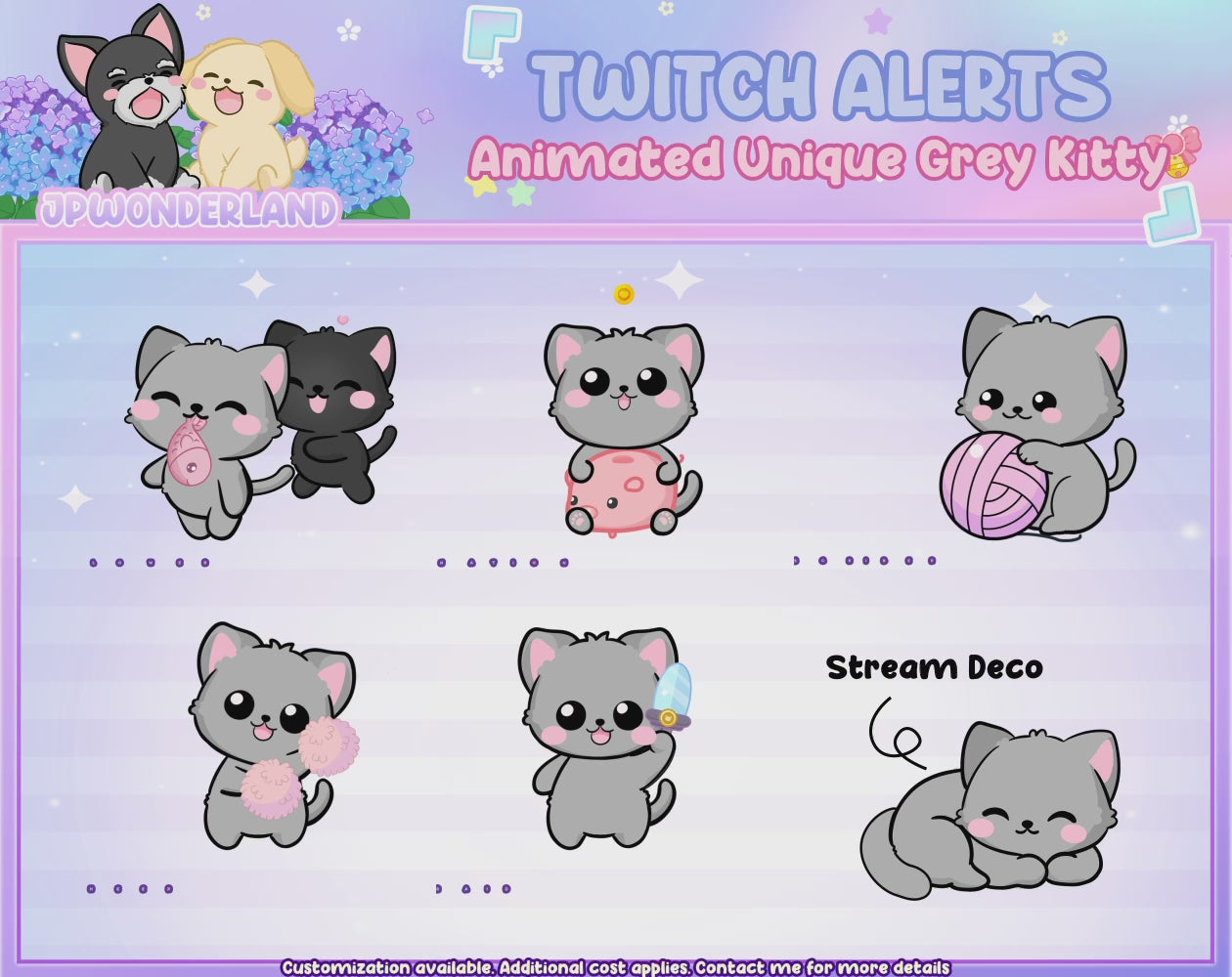 Cute Animated Unique Kitty Twitch Alerts (Grey/White/Black) - Unique Kitty Series | Animated Stream decoration