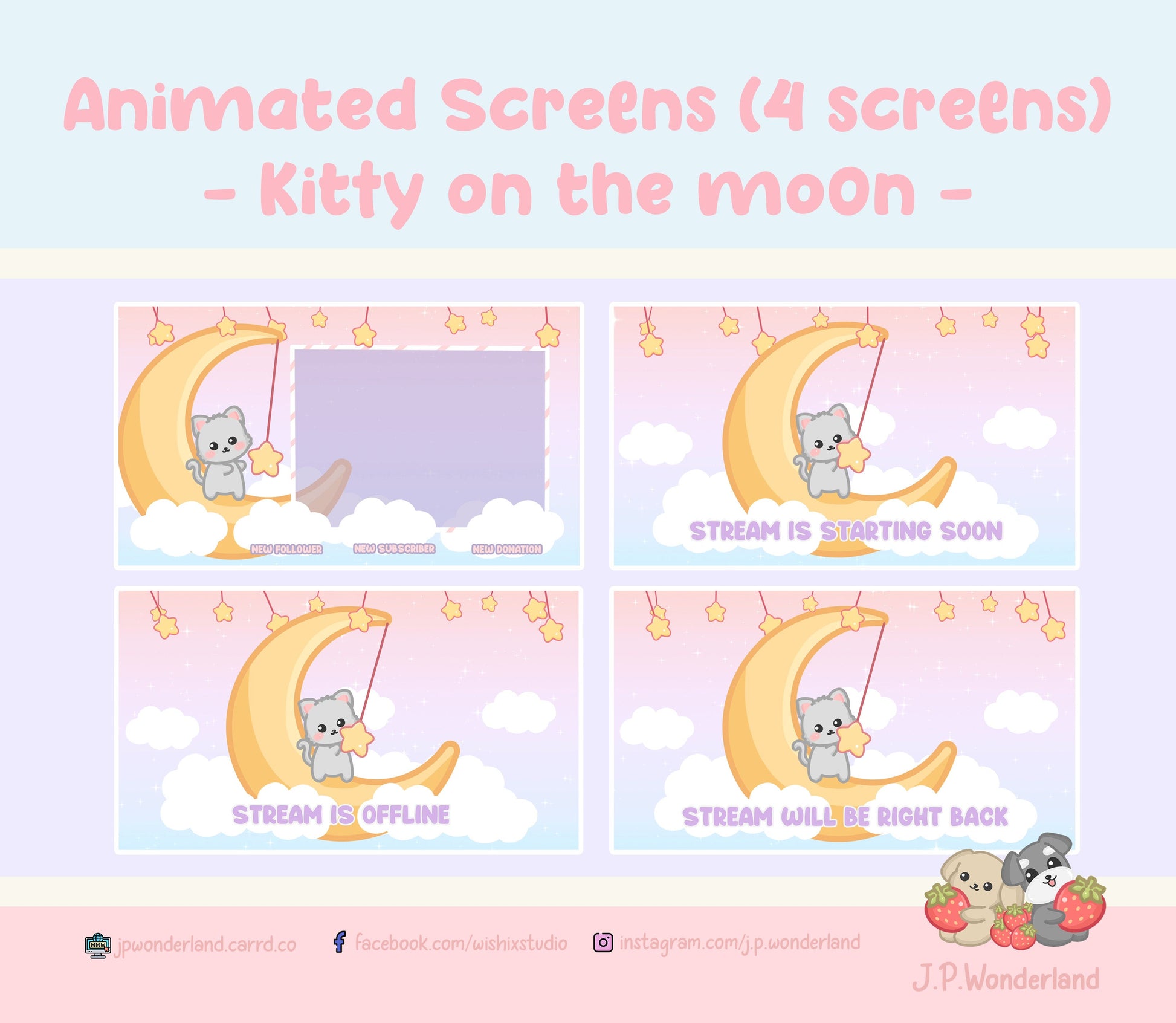 Animated Twitch Overlay - Chat, Offline, Starting Soon & BRB Screen - Kitty on the moon Series