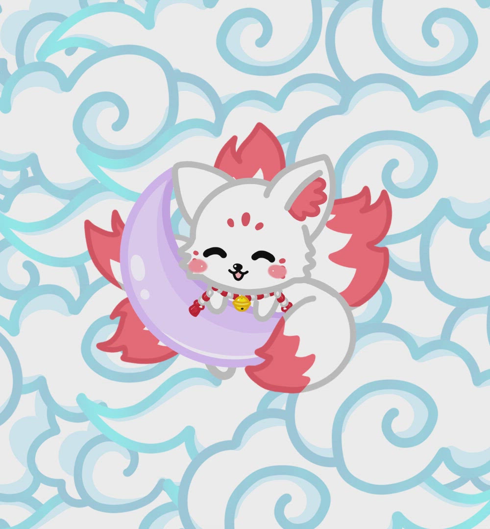 Animated Twitch Stinger Transition - Nine Tailed Fox hugging moon
