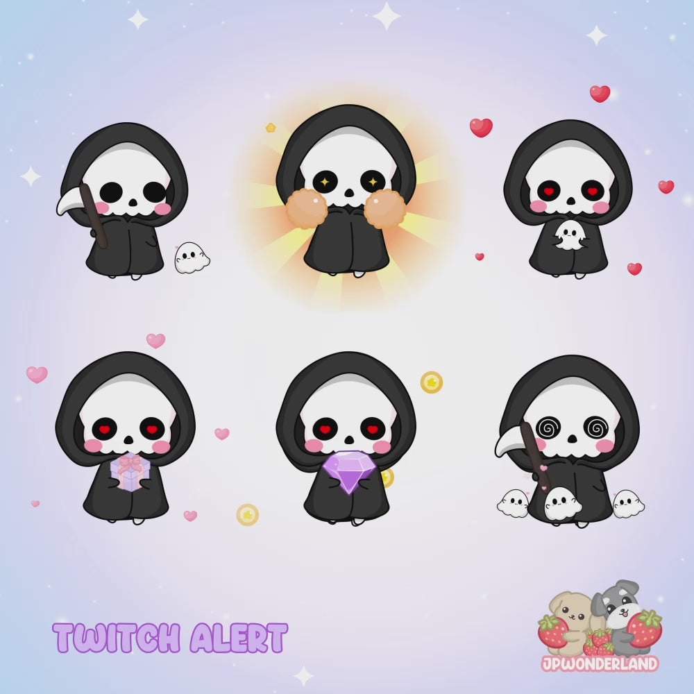 6 Unique cute skeleton grim reaper animated twitch alerts!