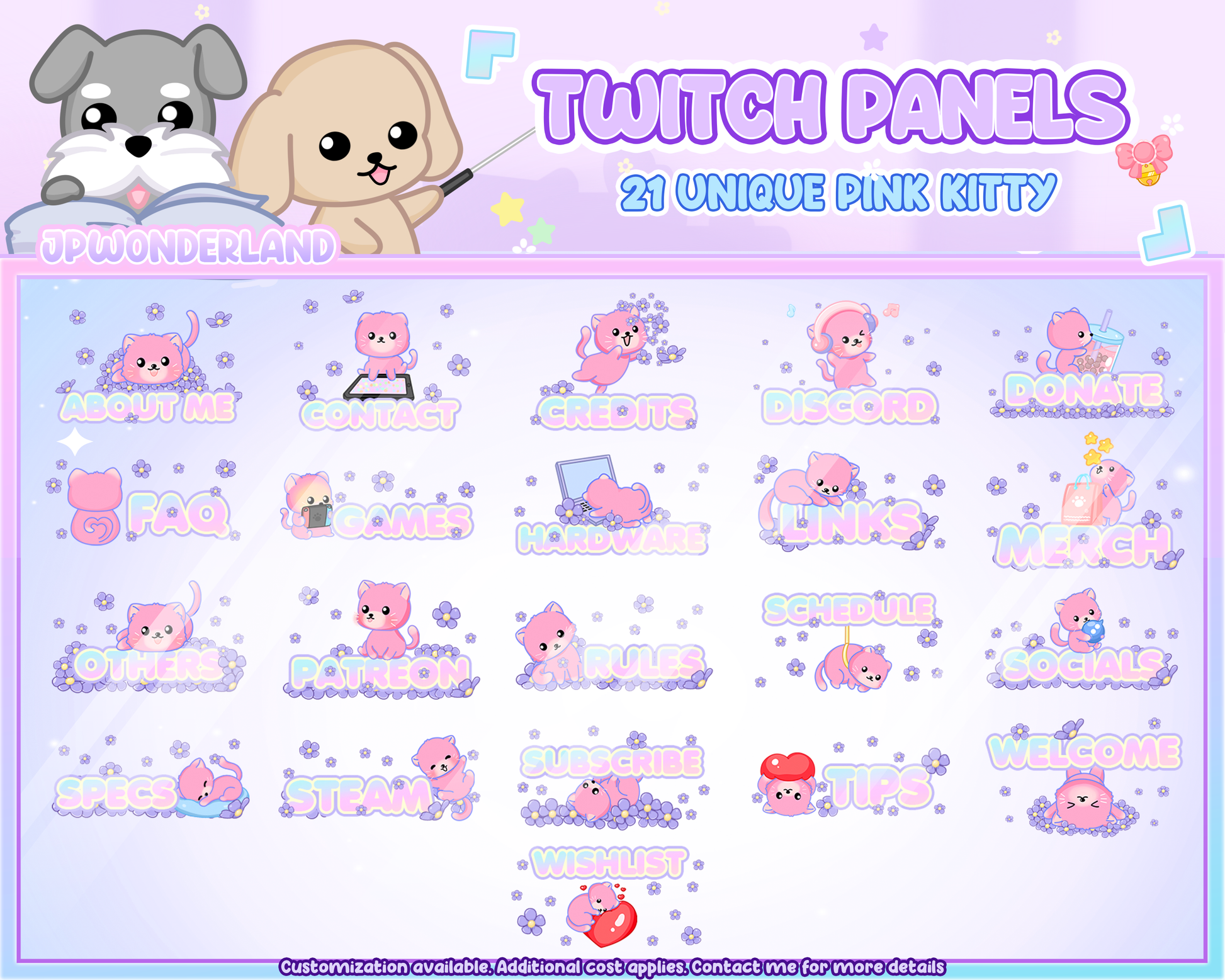 Unique Cute grey/blue/pink/white Cat twitch Panels