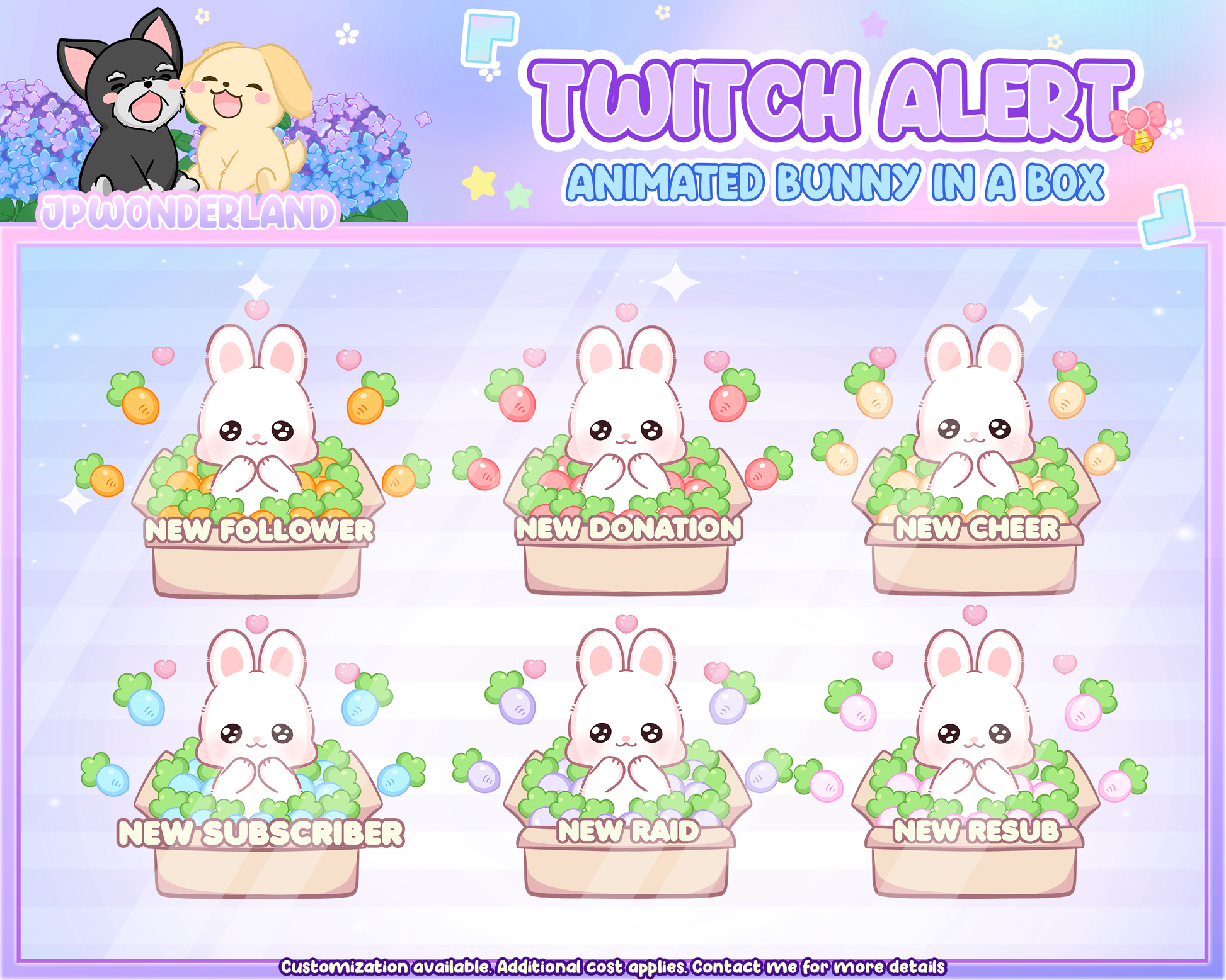 6 Cute Rabbit animated follower, subscriber, donation, raid, cheer, and resub alerts for Twitch!